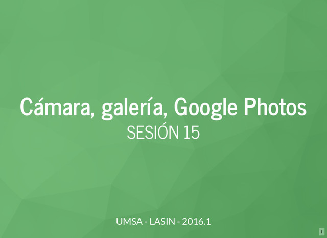 Intent intent = new Intent(Intent.ACTION_PICK, MediaStore.Images.Media.EXTERNAL_CONTENT_URI); startActivityForResult(Intent.createChooser(intent, "Selecciona"), 123); Desde documentos, filtrando solo imágenes. Todas las opciones de aplicaciones (Dropbox, Google Drive, etc) Intent intent = new Intent(Intent.ACTION_GET_CONTENT); intent.setType("image/*"); startActivityForResult(Intent.createChooser(intent, "Selecciona"), 123); Creando un chooser hacemos que siempre se nos presente las aplicaciones soportadas. 4 . 2 http://alvarez.tech