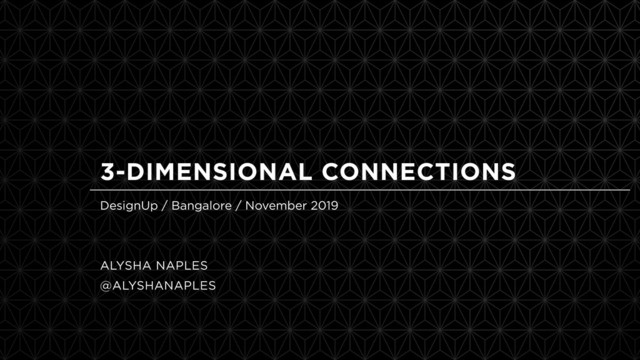A presentation given by Alysha Naples at DesignUp Bangalore on 16 November 2019.