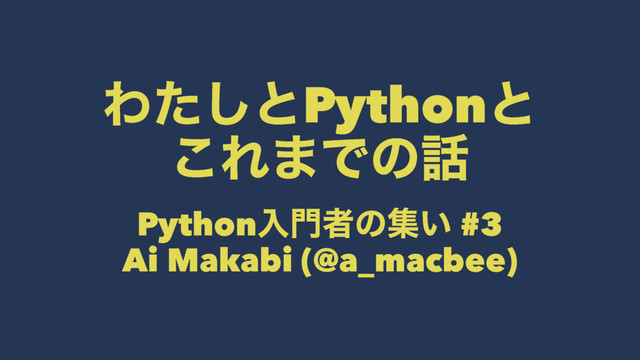 Θͨ͠ͱPythonͱ ͜Ε·Ͱͷ Pythonೖऀͷू͍ #3 Ai Makabi (@a_macbee)