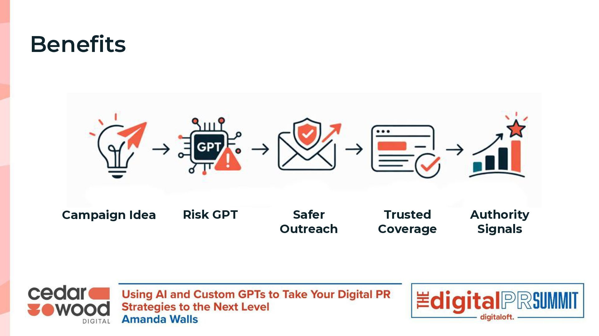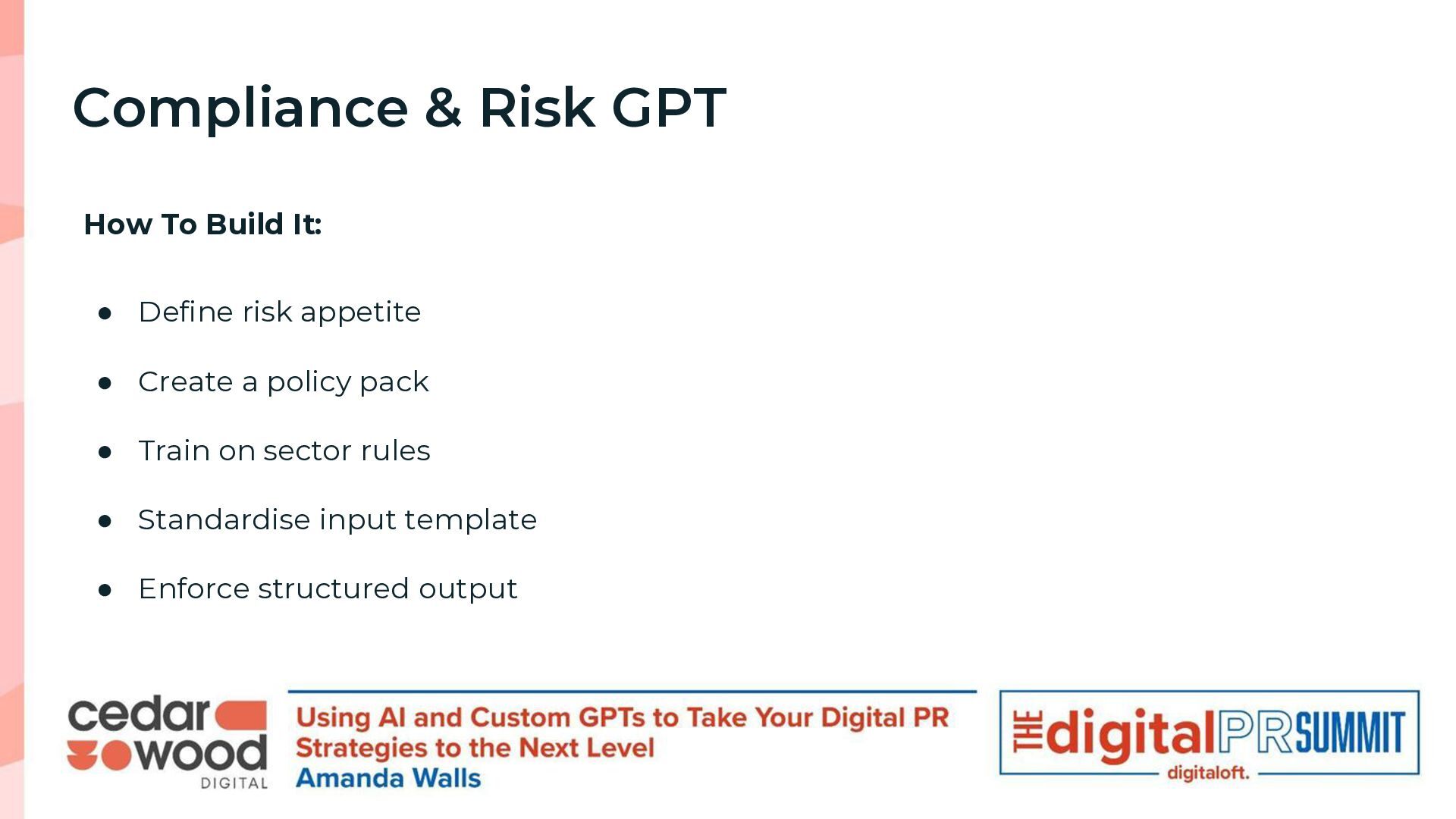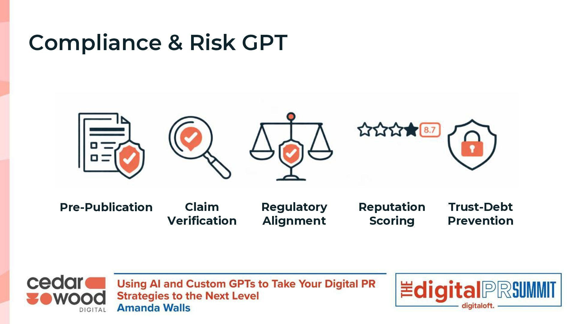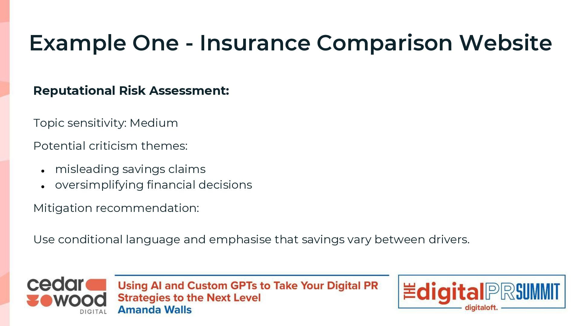 Amanda then introduces a framework of five custom GPTs designed to streamline digital PR workflows, including tools for compliance and risk assessment, newsjacking, coverage tracking, link gap analysis, and journalist intelligence. Through practical examples, such as validating financial claims in PR campaigns, she demonstrates how these tools can reduce risk, improve relevance, and uncover more targeted opportunities. The overarching message is that the future of digital PR lies not in AI driven creativity, but in using AI to remove manual workload, enabling PR professionals to focus on building stronger stories, relationships, and authority signals that drive meaningful coverage.