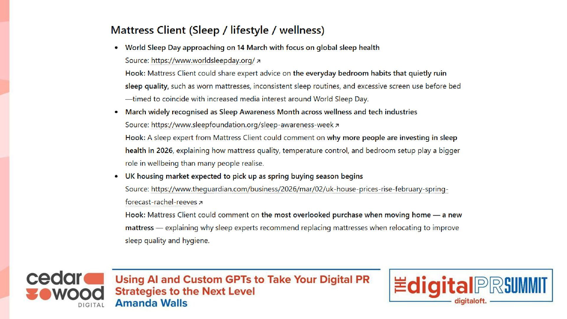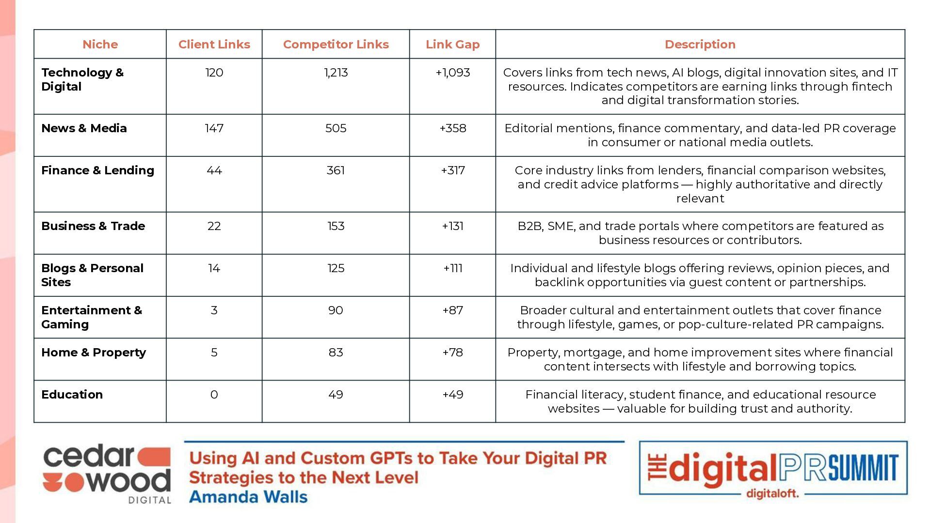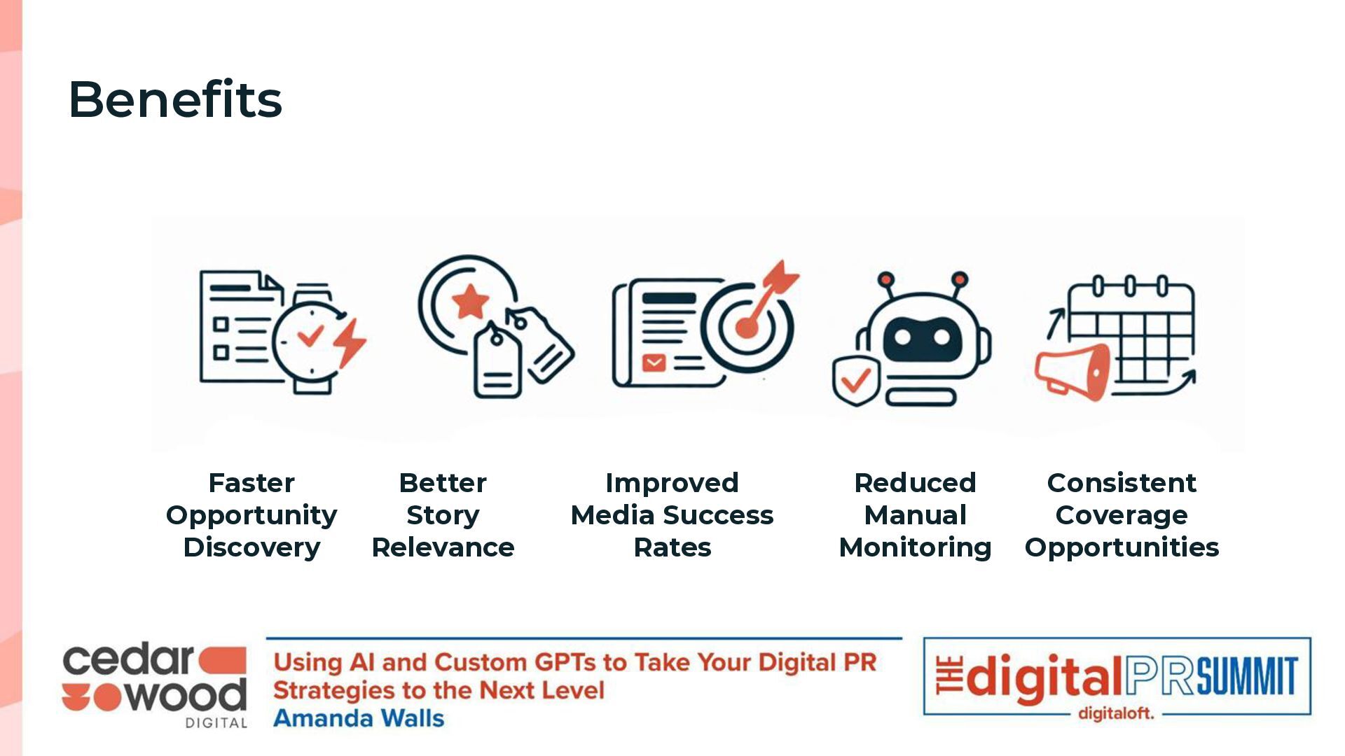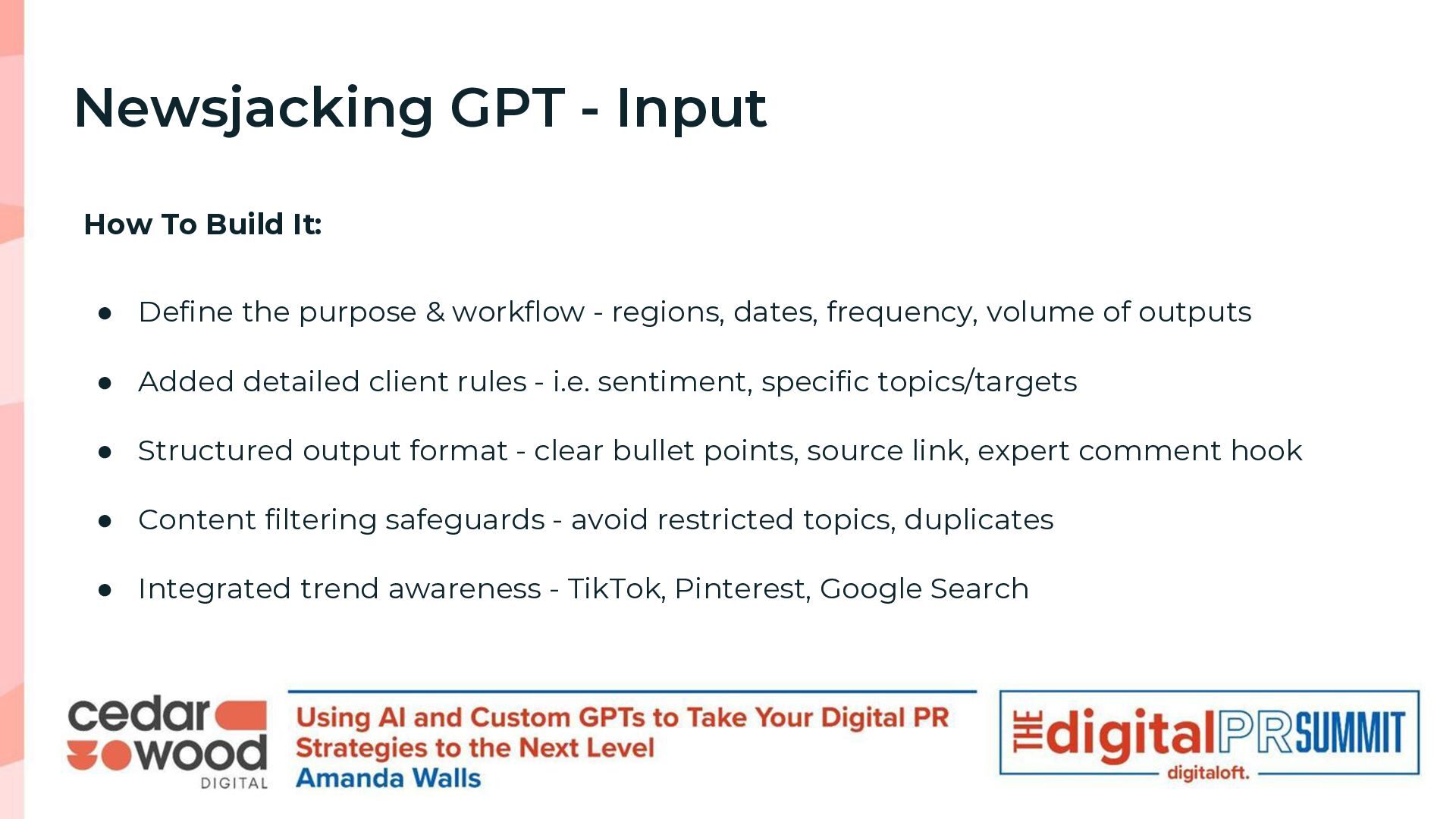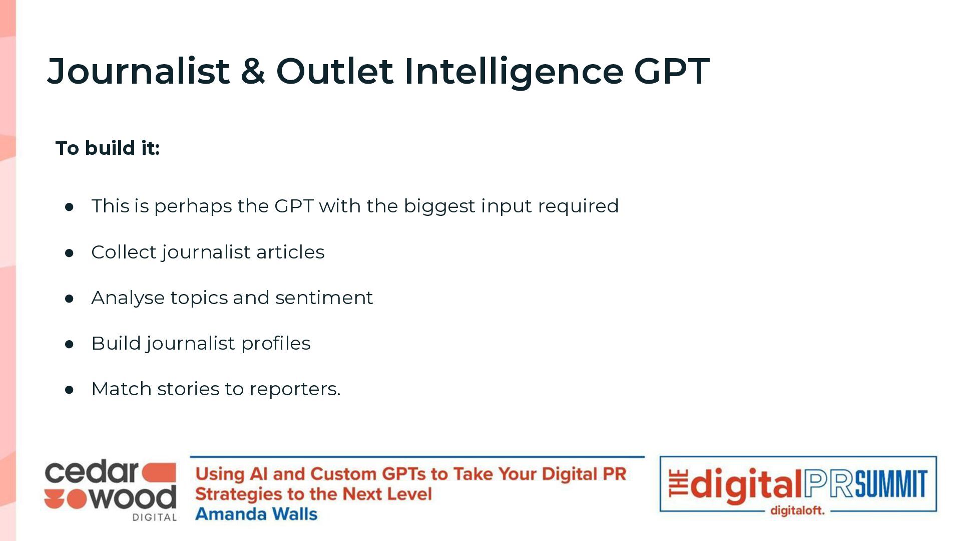 Amanda then introduces a framework of five custom GPTs designed to streamline digital PR workflows, including tools for compliance and risk assessment, newsjacking, coverage tracking, link gap analysis, and journalist intelligence. Through practical examples, such as validating financial claims in PR campaigns, she demonstrates how these tools can reduce risk, improve relevance, and uncover more targeted opportunities. The overarching message is that the future of digital PR lies not in AI driven creativity, but in using AI to remove manual workload, enabling PR professionals to focus on building stronger stories, relationships, and authority signals that drive meaningful coverage.