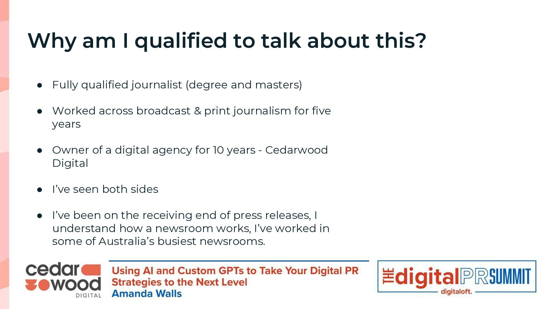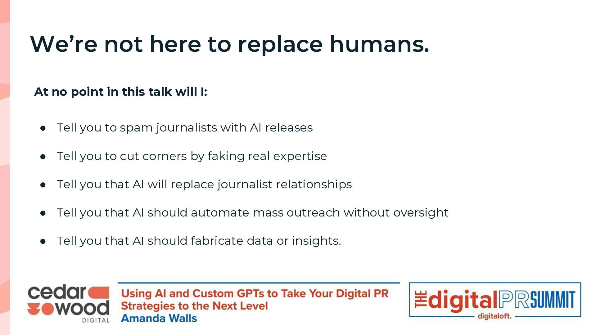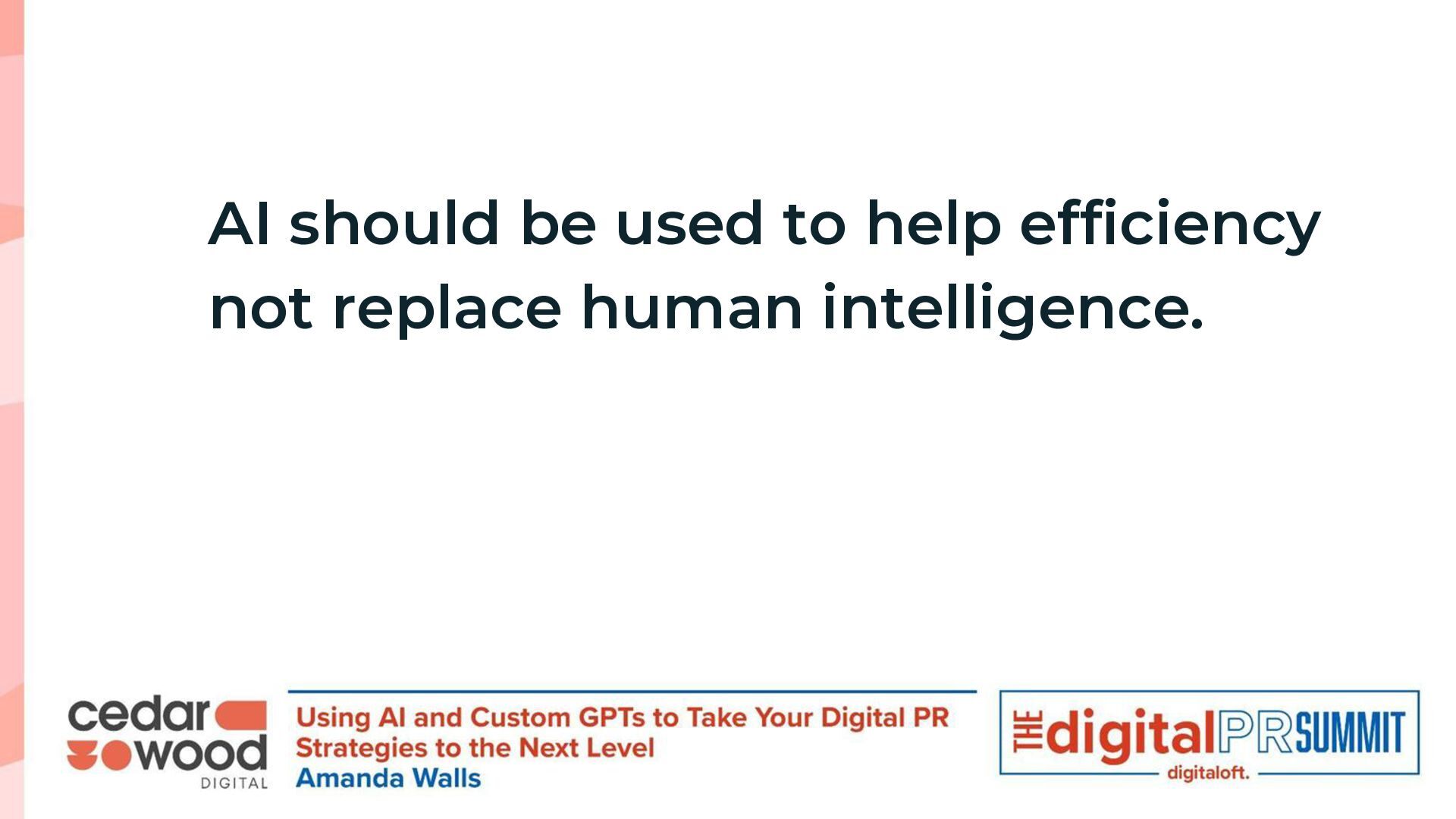 In this talk, Amanda Walls explores how AI and custom GPTs can be used to enhance digital PR strategies without replacing the human expertise that underpins successful campaigns. She begins by emphasising that AI should not be used to cut corners, fabricate insights, or automate relationships with journalists, but instead to improve efficiency and support better decision making. Drawing on her experience as both a journalist and agency owner, she positions AI as a tool to strengthen processes such as compliance, research, and outreach while maintaining editorial integrity and trust.