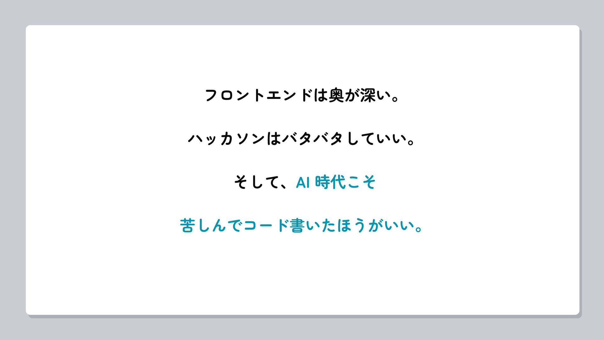 フロントエンドは奥が深い。 ハッカソンはバタバタしていい。 そして、AI 時代こそ 苦しんでコード書いたほうがいい。