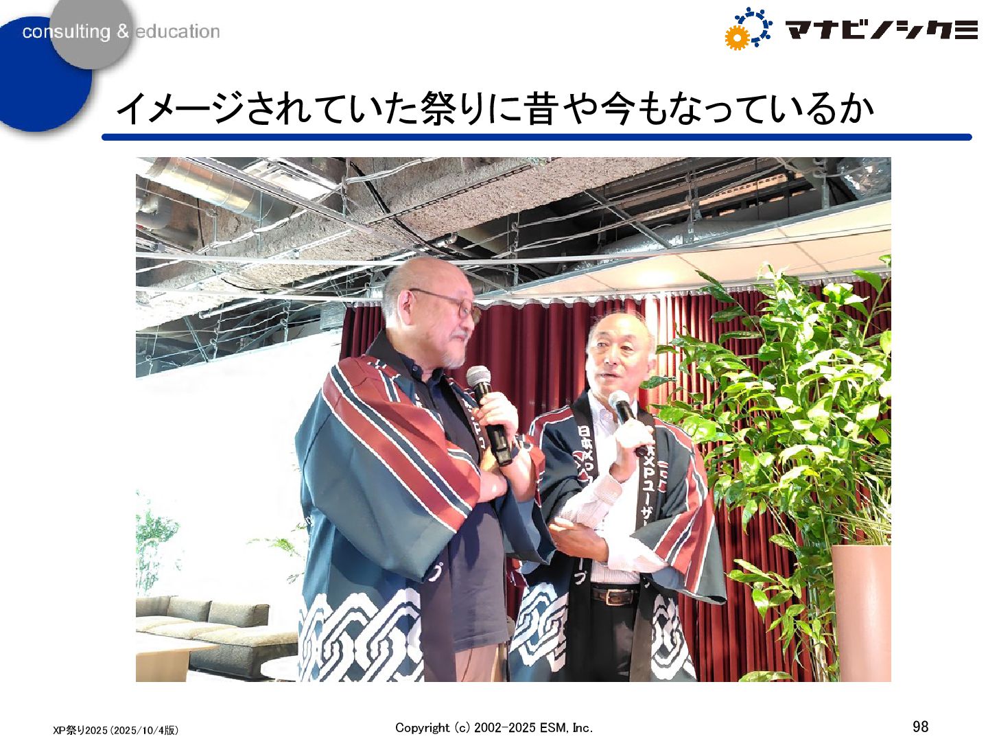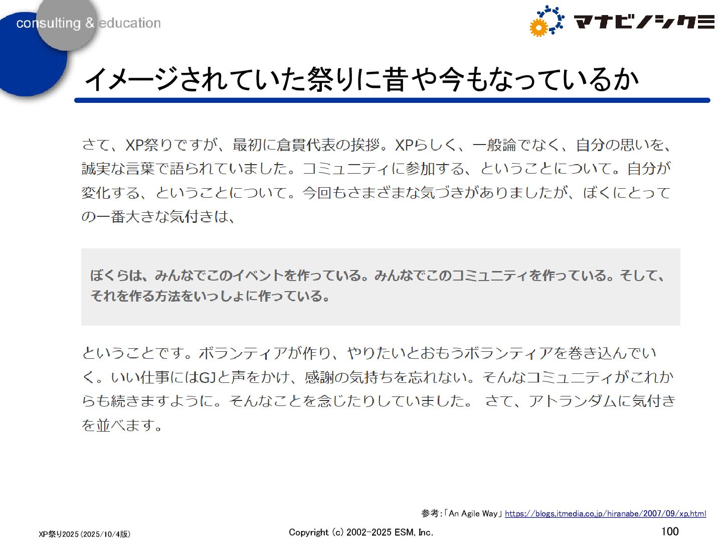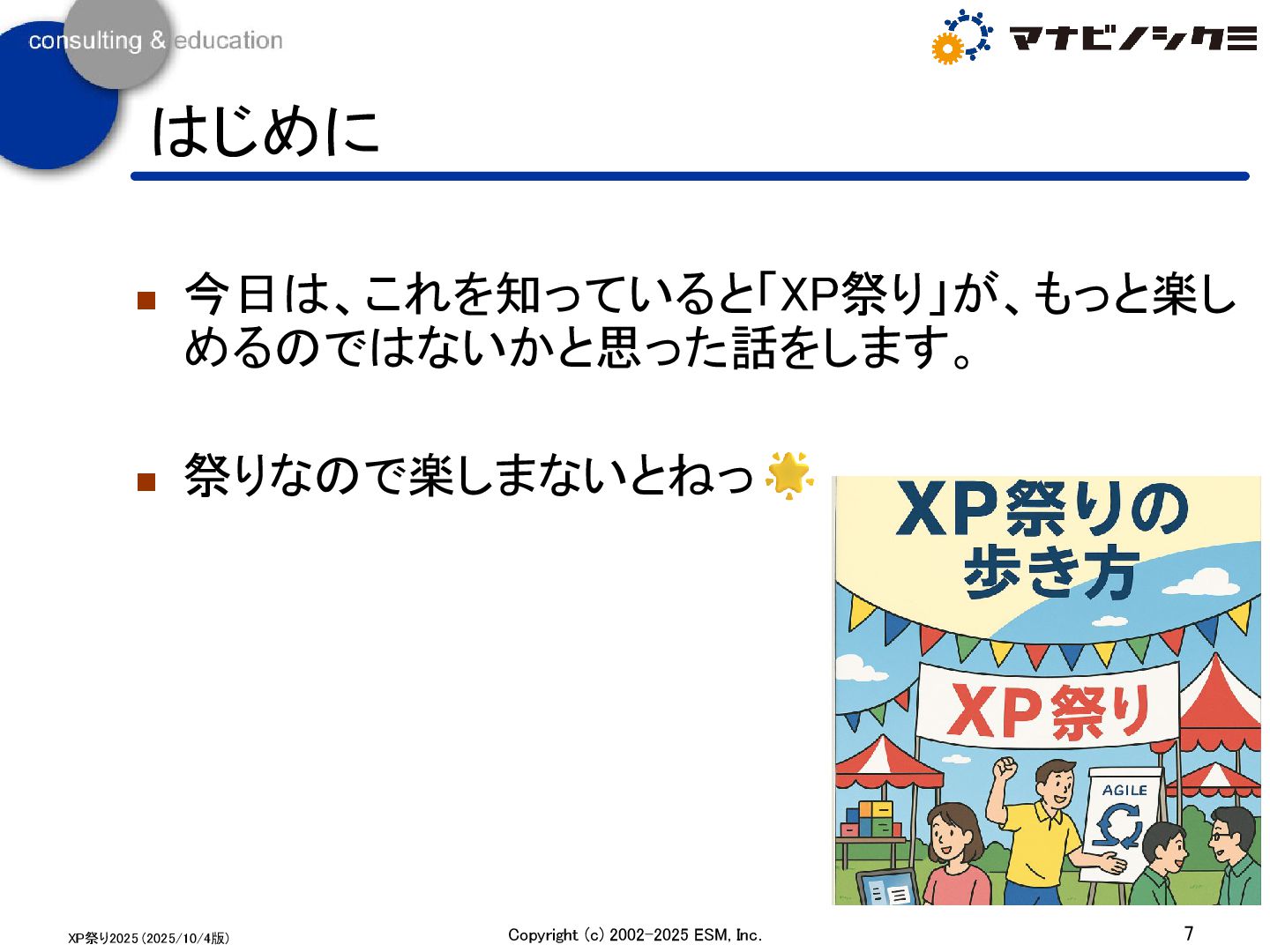 私にとってXP祭りや、XPJUGは、心地よい居場所の一つです。同じように思ってくれるような人が増えると良いなと思い、余計なお世話だと思われるかもしれない不安を抱えつつ、XP祭りに関係する、今伝えたい事を資料に盛り込みました。
