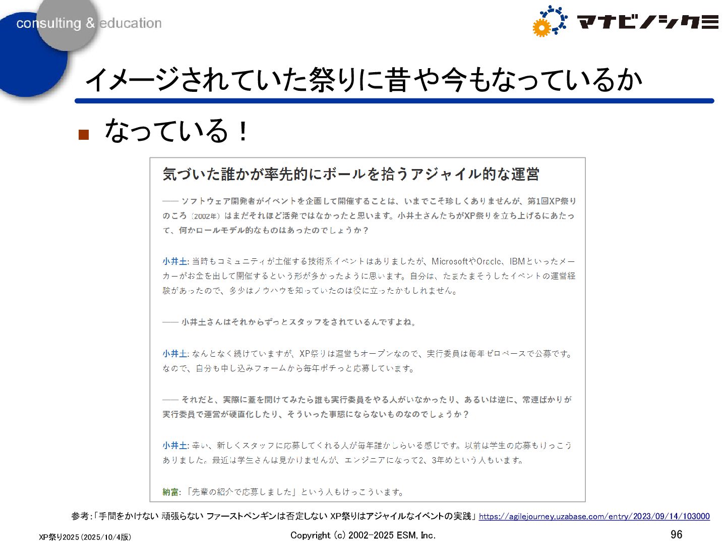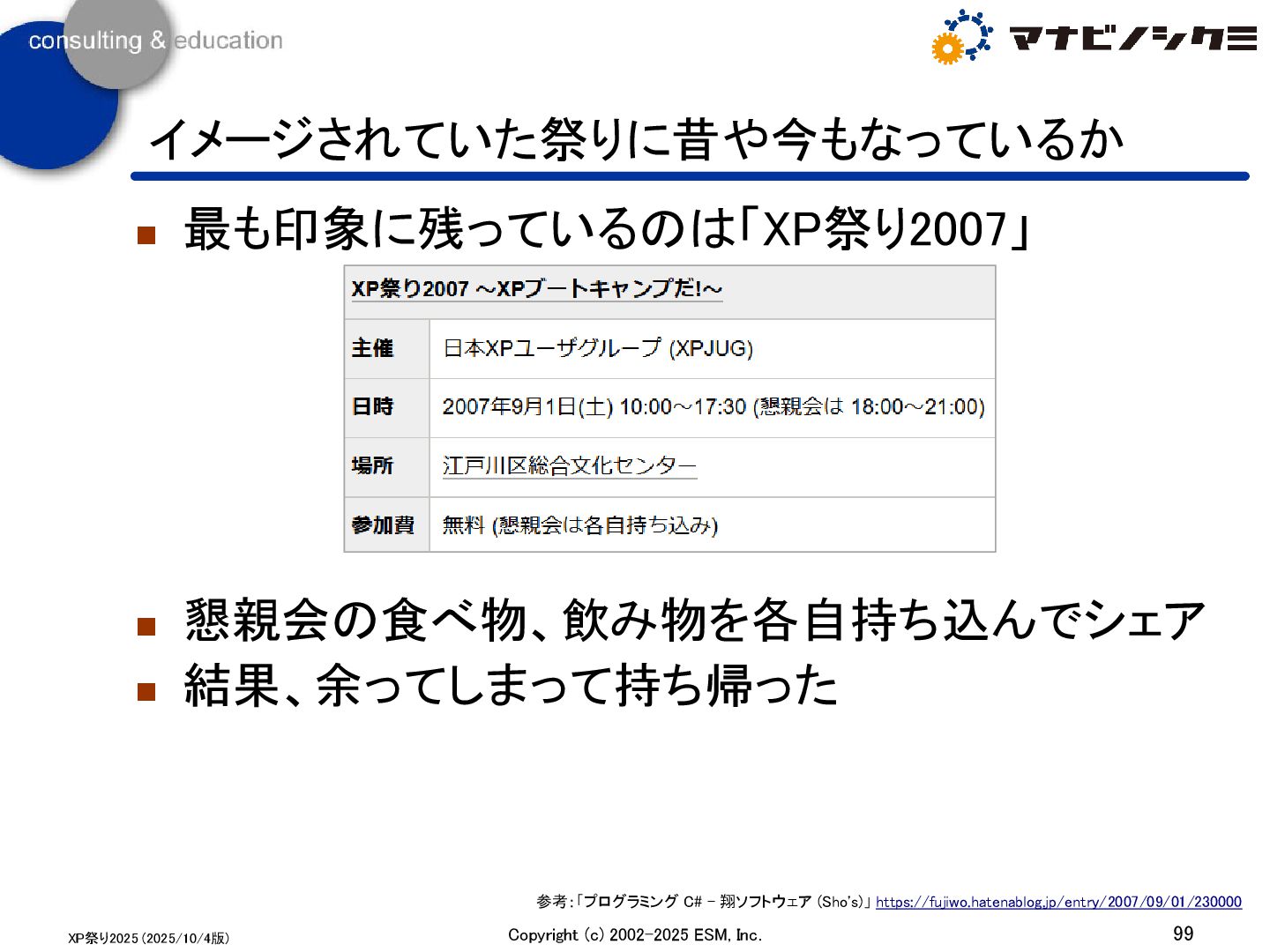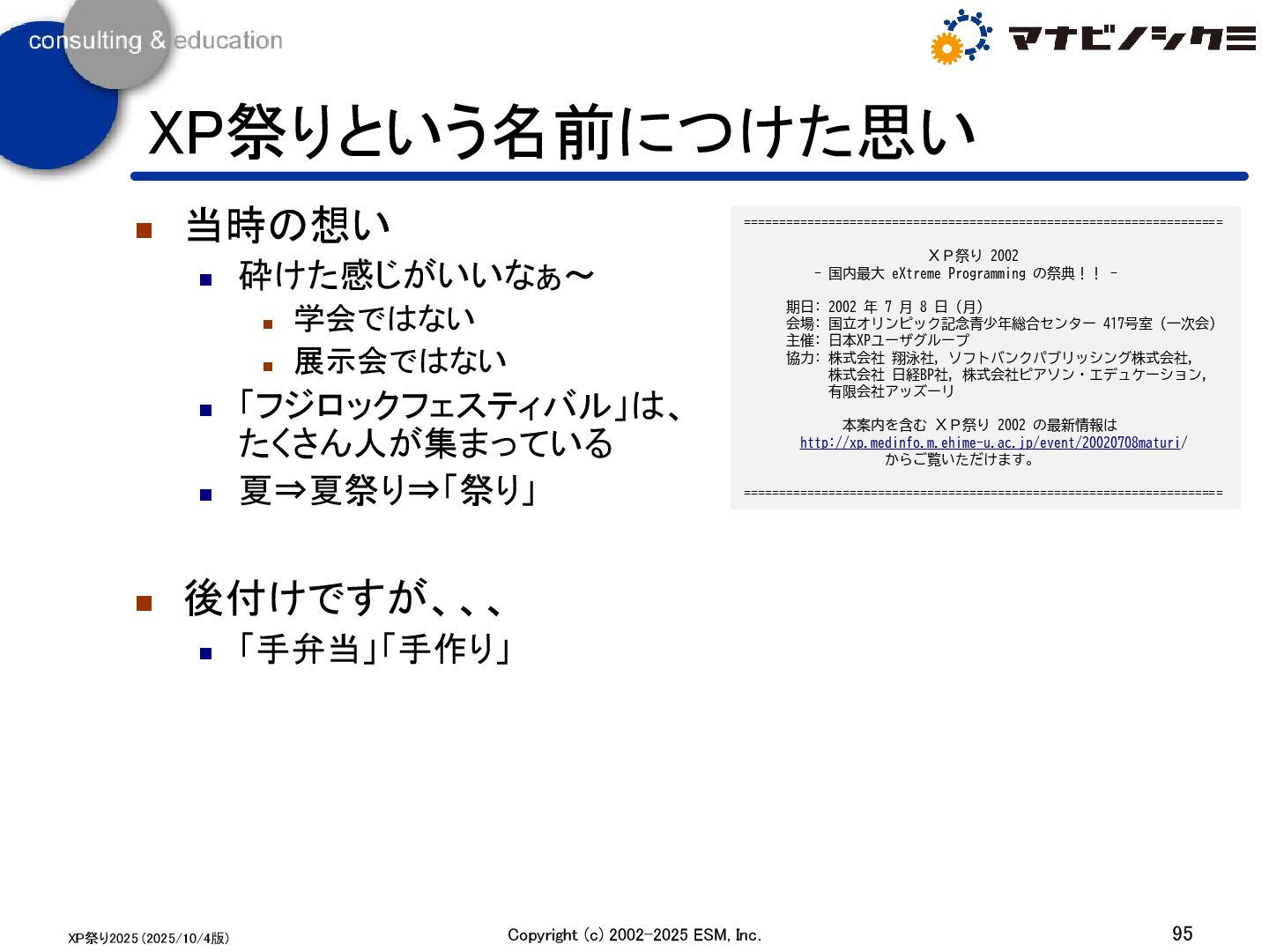 私にとってXP祭りや、XPJUGは、心地よい居場所の一つです。同じように思ってくれるような人が増えると良いなと思い、余計なお世話だと思われるかもしれない不安を抱えつつ、XP祭りに関係する、今伝えたい事を資料に盛り込みました。