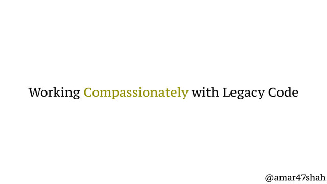 Your code is your partner. It struggles against you, but also alongside you. Your code comes to you as it is, not as you wish it were. Like a real-life partner, it has a history that you’ll never fully know; like a real-life child, it bears your imprint, but it is wild, unruly, and fiercely self-sovereign. You’ll never stop working with code that’s hard to figure out or difficult to change. But this code, this stubborn creature, is entrusted to you. Let go of your anger at the developer who wrote it. Let go of the terror of being blamed for its unforeseeable regressions. Let go--and find joy.