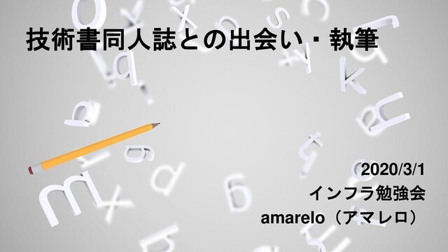 技術書同人誌との出会い・執筆 2020/3/1 インフラ勉強会 amarelo(アマレロ)