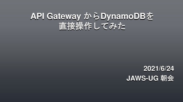 API Gateway からDynamoDBを 直接操作してみた 2021/6/24 JAWS-UG 朝会
