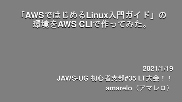 「AWSではじめるLinux入門ガイド」の 環境をAWS CLIで作ってみた。 2021/1/19 JAWS-UG 初心者支部#35 LT大会!! amarelo(アマレロ)