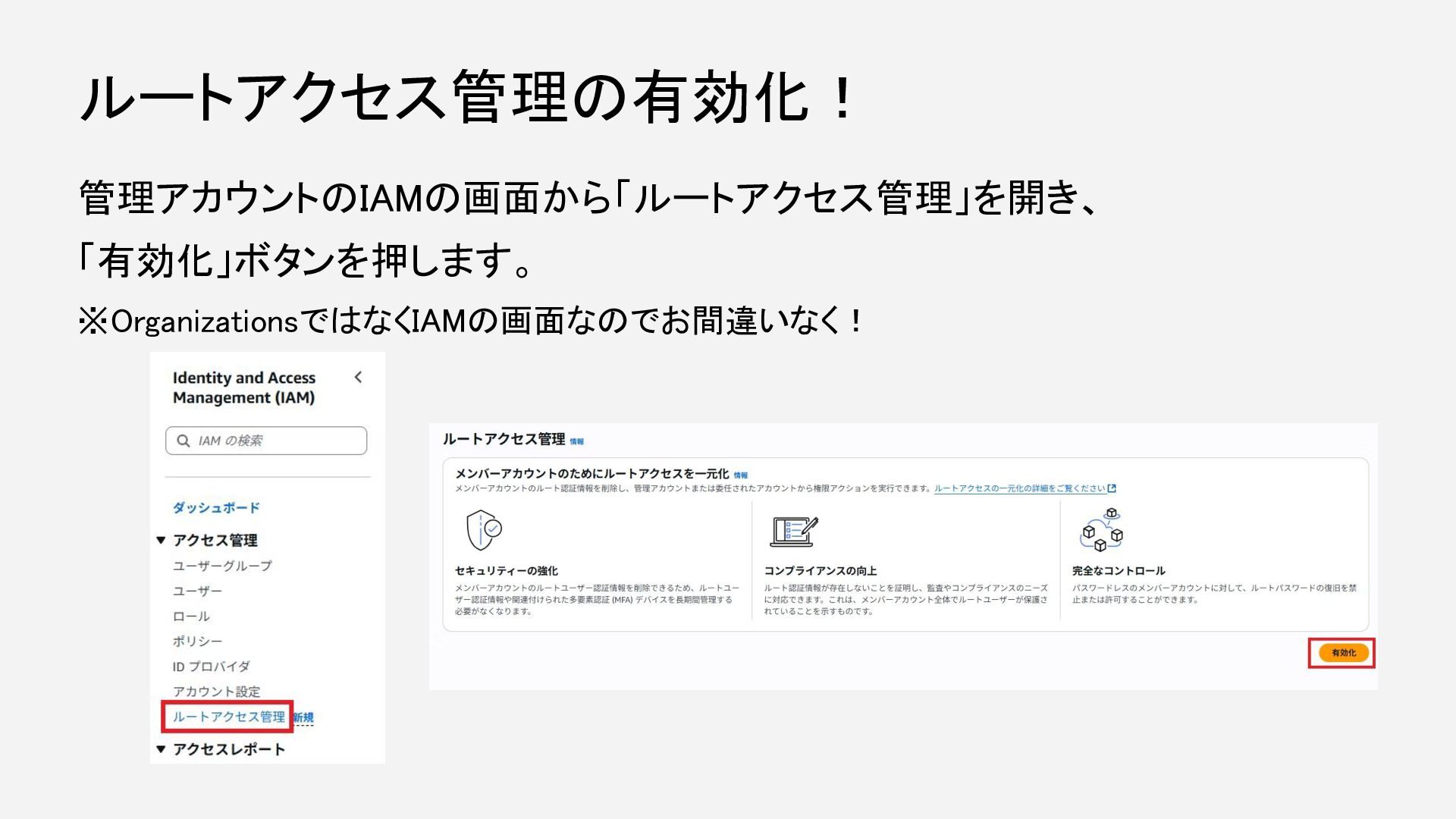 おひとり様Organizations管理者もルートアクセス管理を有効にしよう!