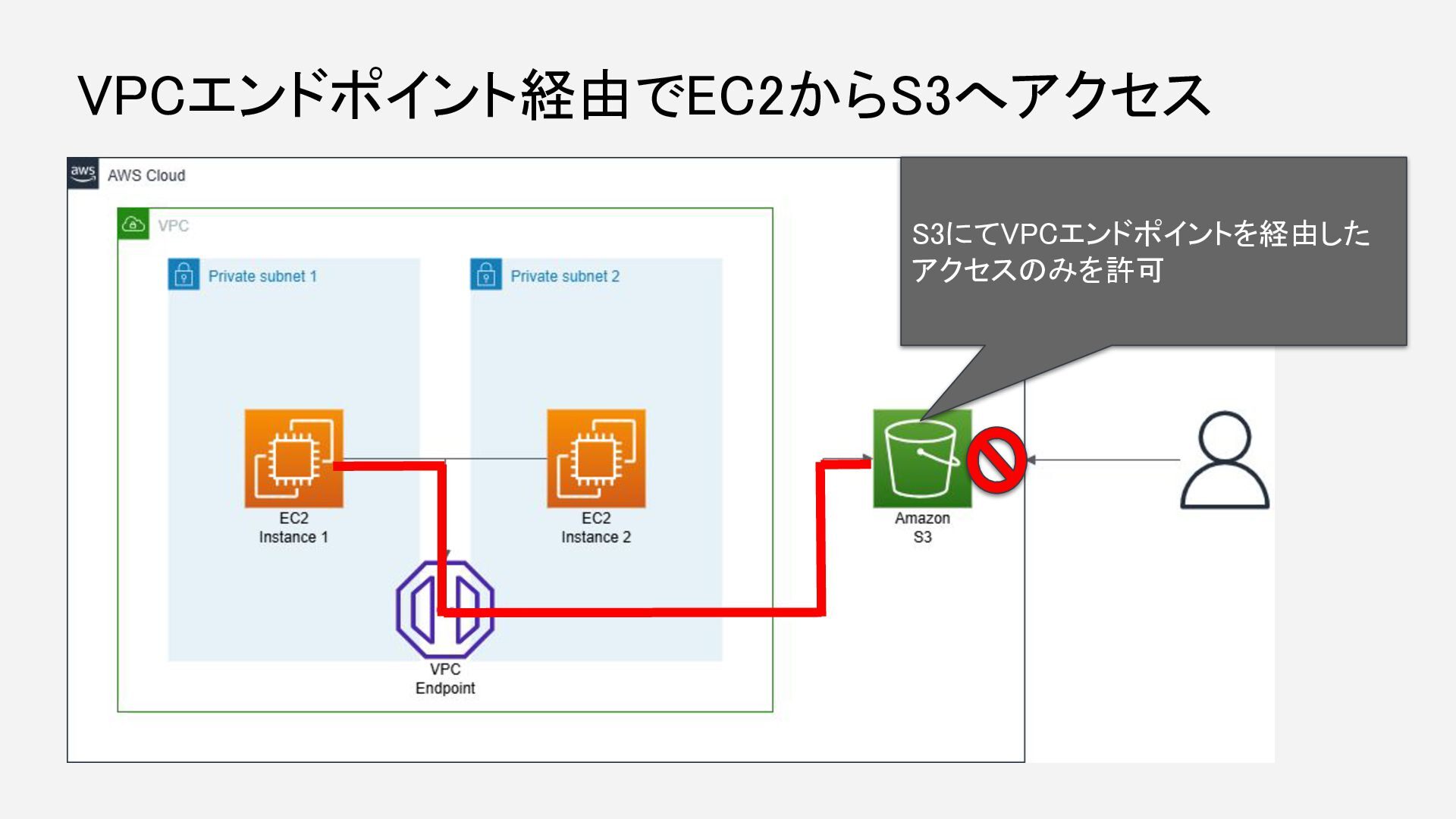 VPCエンドポイント経由でEC2からS3へアクセス S3にてVPCエンドポイントを経由した アクセスのみを許可