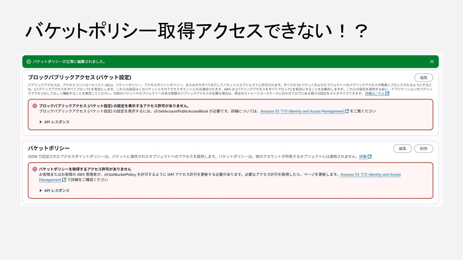 バケットポリシー取得アクセスできない!?