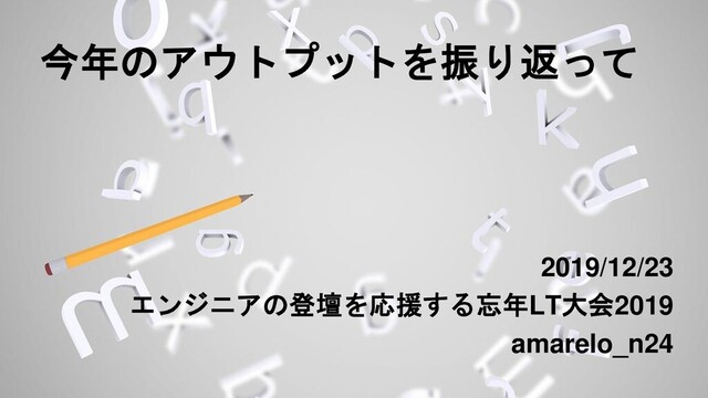 今年のアウトプットを振り返って 2019/12/23 エンジニアの登壇を応援する忘年LT大会2019 amarelo_n24