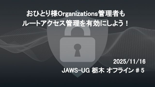 おひとり様Organizations管理者も ルートアクセス管理を有効にしよう! 2025/11/16 JAWS-UG 栃木 オフライン #