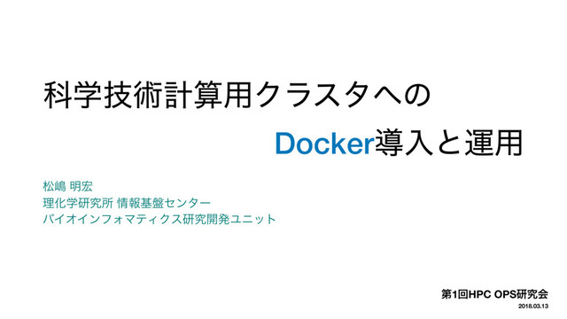 Պֶٕज़ܭࢉ༻Ϋϥελͷ Dockerಋೖͱӡ༻ দౢ ໌ ཧԽֶݚڀॴ ใج൫ηϯλʔ όΠΦΠϯϑΥϚςΟΫεݚڀ։ൃϢχοτ ୈ1ճHPC OPSݚڀձ 2018.03.13