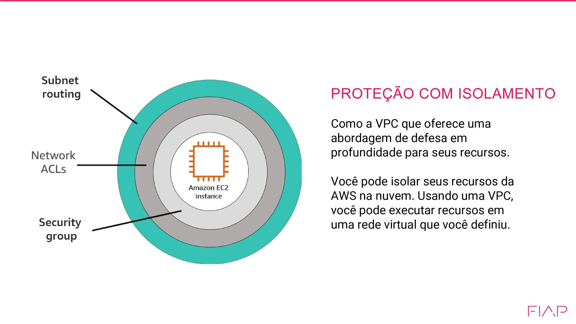 de defesa em profundidade para seus recursos. Você pode isolar seus recursos da AWS na nuvem. Usando uma VPC, você pode executar recursos em uma rede virtual que você definiu.