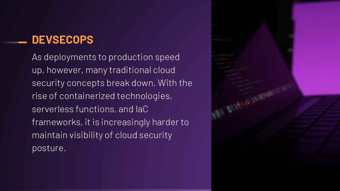 cloud security concepts break down. With the rise of containerized technologies, serverless functions, and IaC frameworks, it is increasingly harder to maintain visibility of cloud security posture. 12
