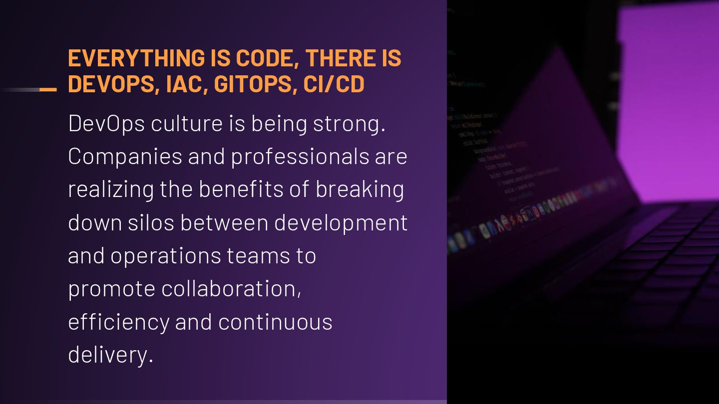 culture is being strong. Companies and professionals are realizing the benefits of breaking down silos between development and operations teams to promote collaboration, efficiency and continuous delivery. 9