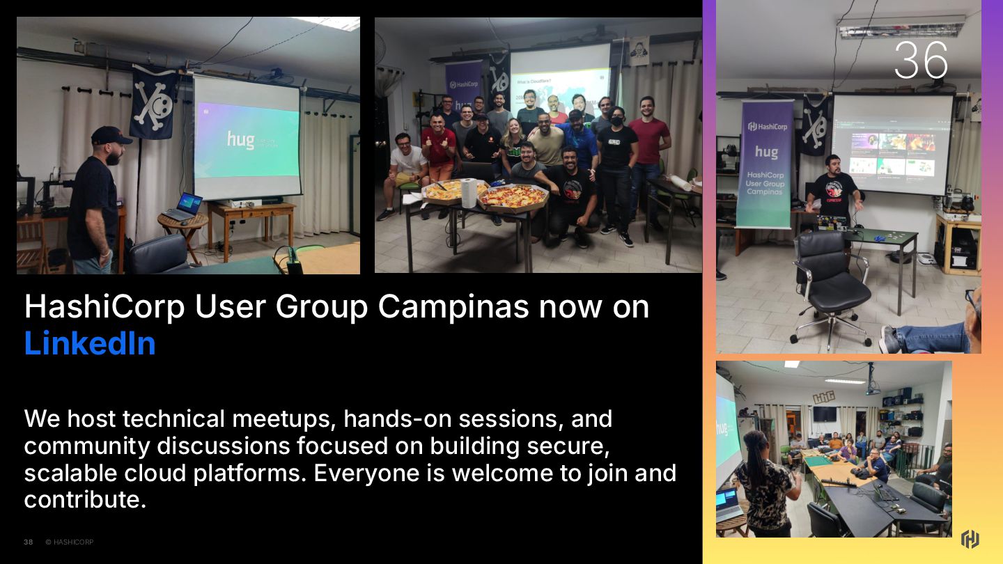 We host technical meetups, hands-on sessions, and community discussions focused on building secure, scalable cloud platforms. Everyone is welcome to join and contribute. 36