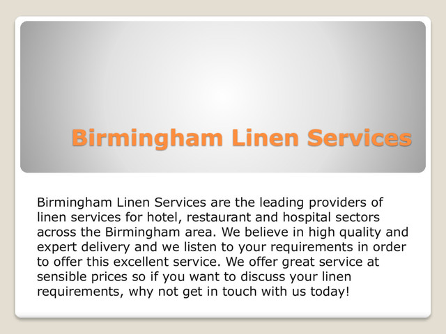 Birmingham Linen Services are the leading linen service providers for restaurants, hotels, dry cleaning, housekeeping and hospitality Industries. We serve both domestic and commercial sectors and pride ourselves on providing an unrivalled service based on efficiency, quality and expert delivery. We have built our reputation by offering a reliable and professional service, so if you are looking for good linen cleaning, feel free to talk to us. Our team members are here to assist you.