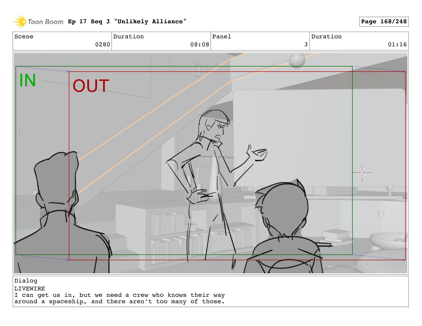 I can get us in, but we need a crew who knows their way around a spaceship, and there aren’t too many of those. Ep 17 Seq 3 "Unlikely Alliance" Page 168/248