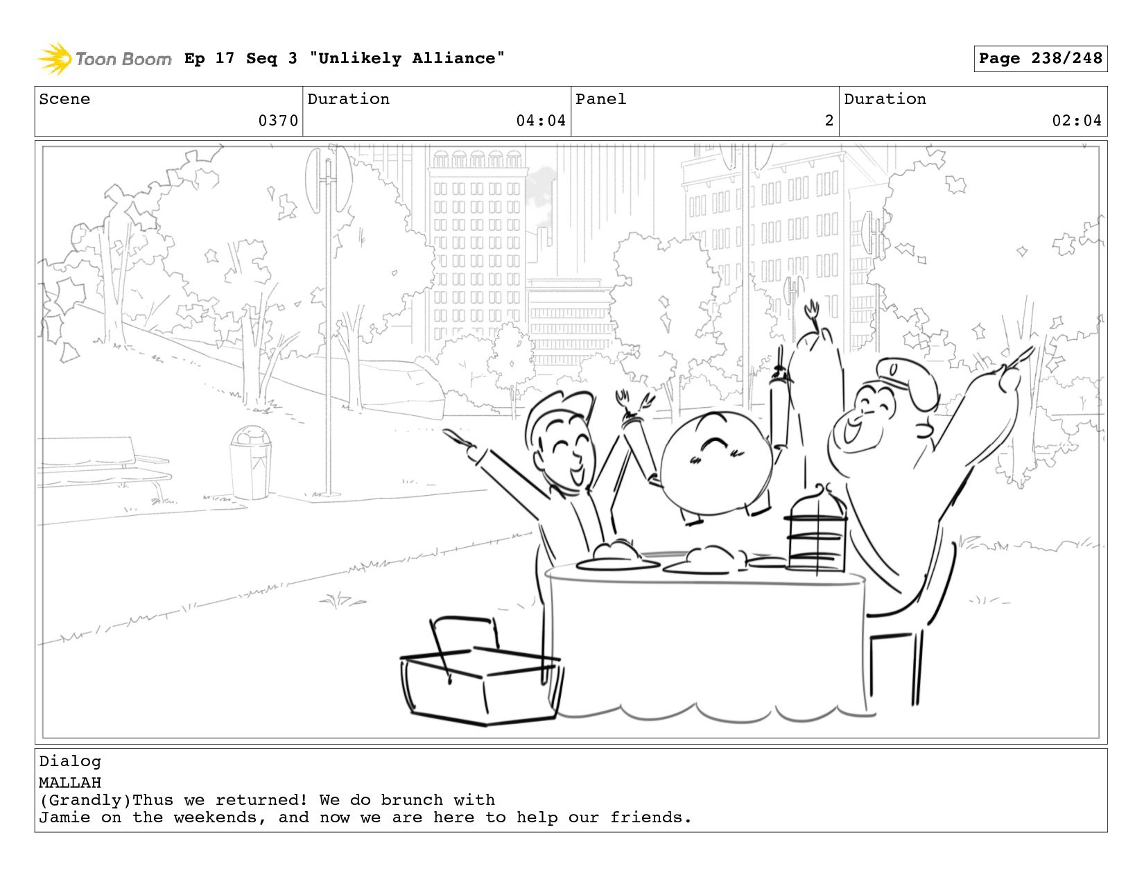 (Grandly)Thus we returned! We do brunch with Jamie on the weekends, and now we are here to help our friends. Ep 17 Seq 3 "Unlikely Alliance" Page 237/248