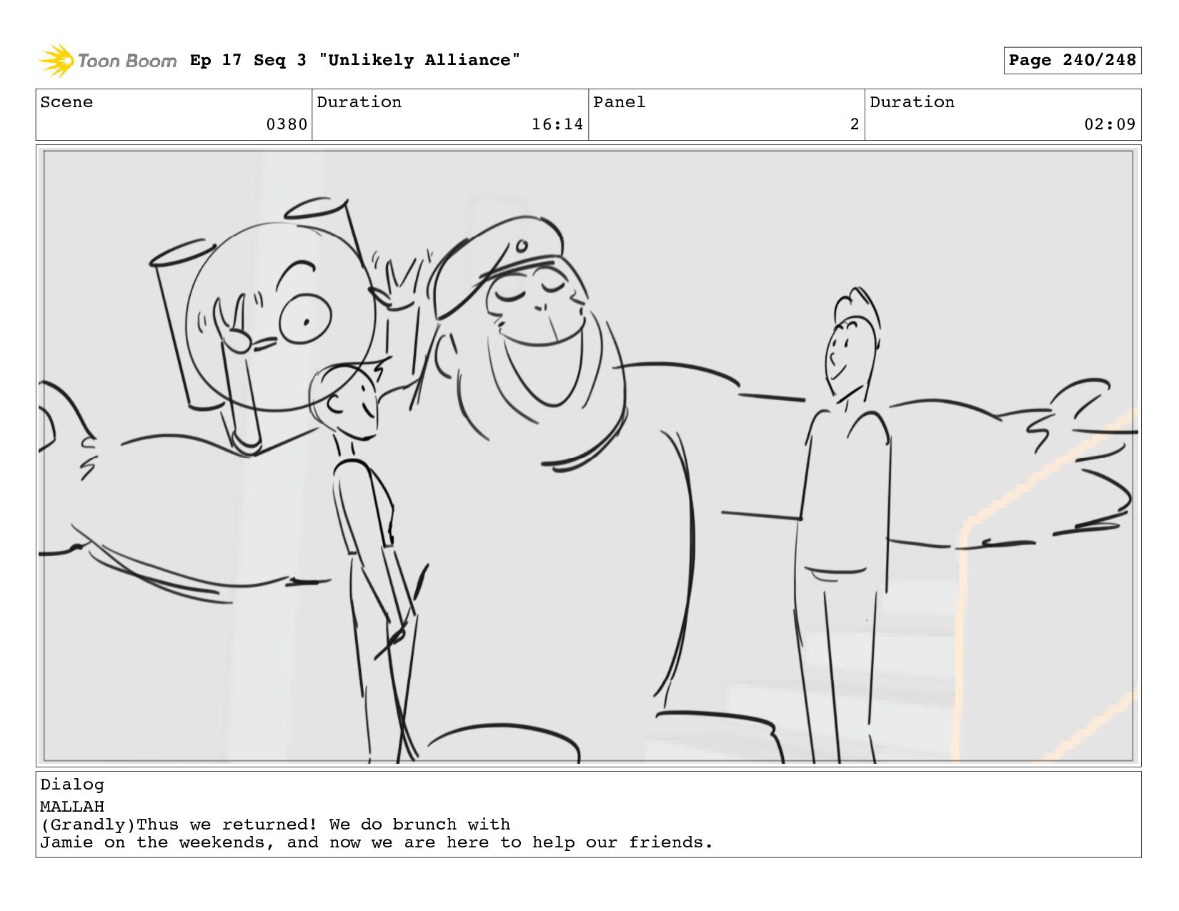(Grandly)Thus we returned! We do brunch with Jamie on the weekends, and now we are here to help our friends. Ep 17 Seq 3 "Unlikely Alliance" Page 240/248