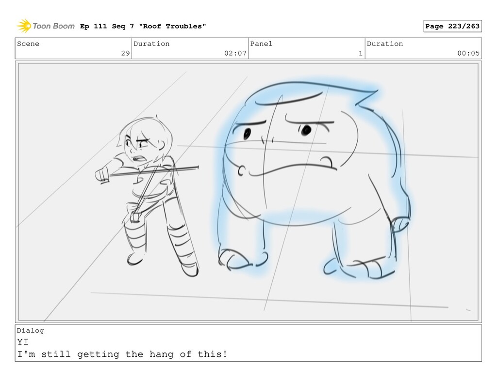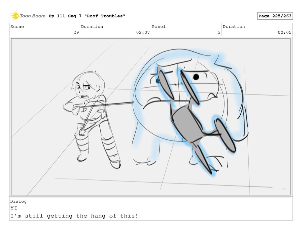 Scene 29 Duration 02:07 Panel 2 Duration 00:05 Dialog YI