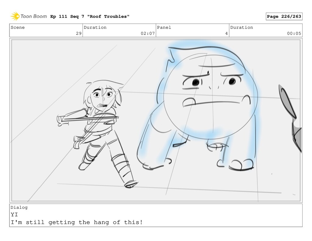 Scene 29 Duration 02:07 Panel 4 Duration 00:05 Dialog YI