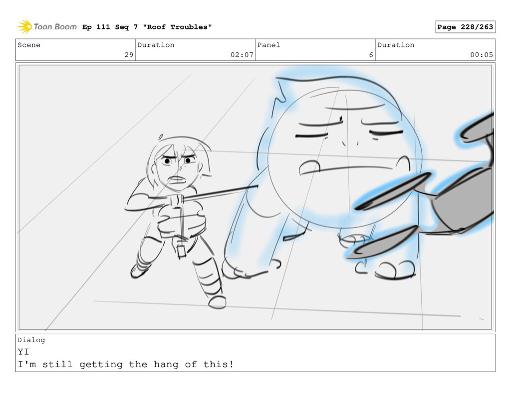 Scene 29 Duration 02:07 Panel 6 Duration 00:05 Dialog YI