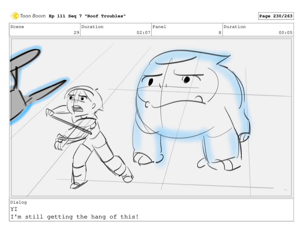 Scene 29 Duration 02:07 Panel 8 Duration 00:05 Dialog YI