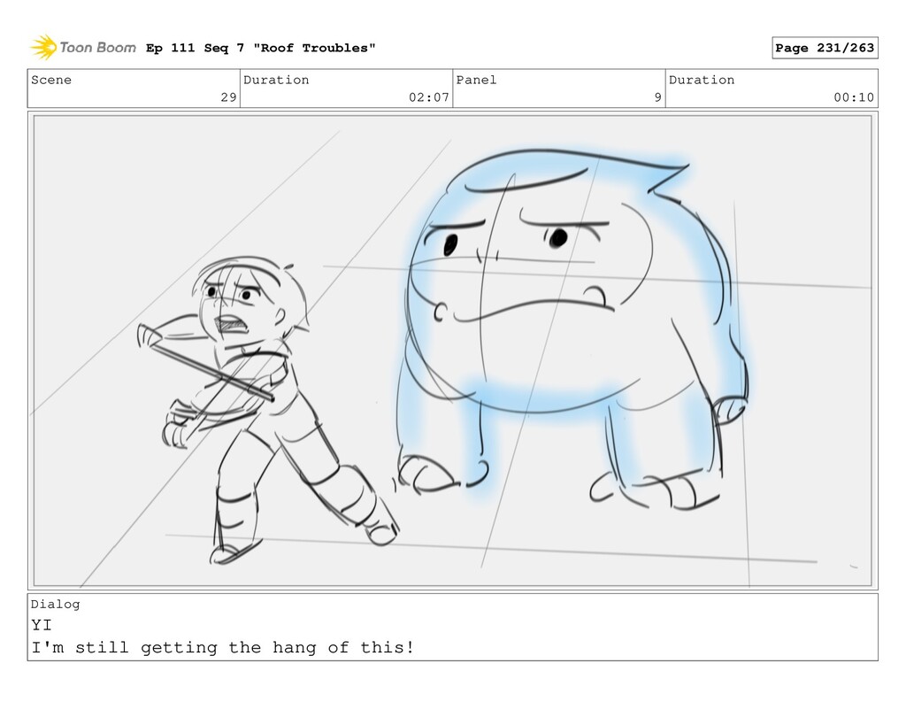 Scene 29 Duration 02:07 Panel 9 Duration 00:10 Dialog YI