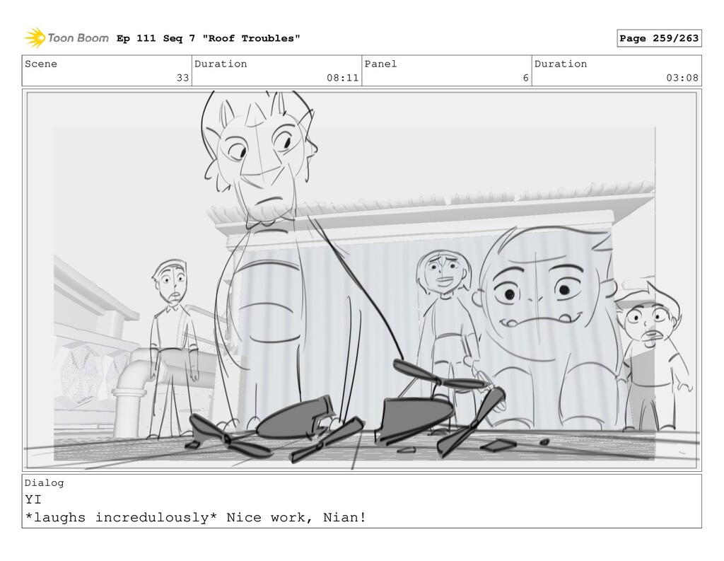 *laughs incredulously* Nice work, Nian! Ep 111 Seq 7 "Roof Troubles" Page 259/263