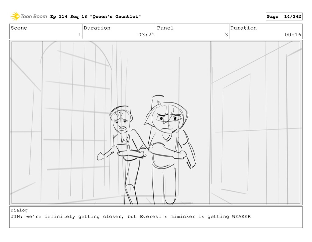 Scene 1 Duration 03:21 Panel 3 Duration 00:16 Dialog JIN: