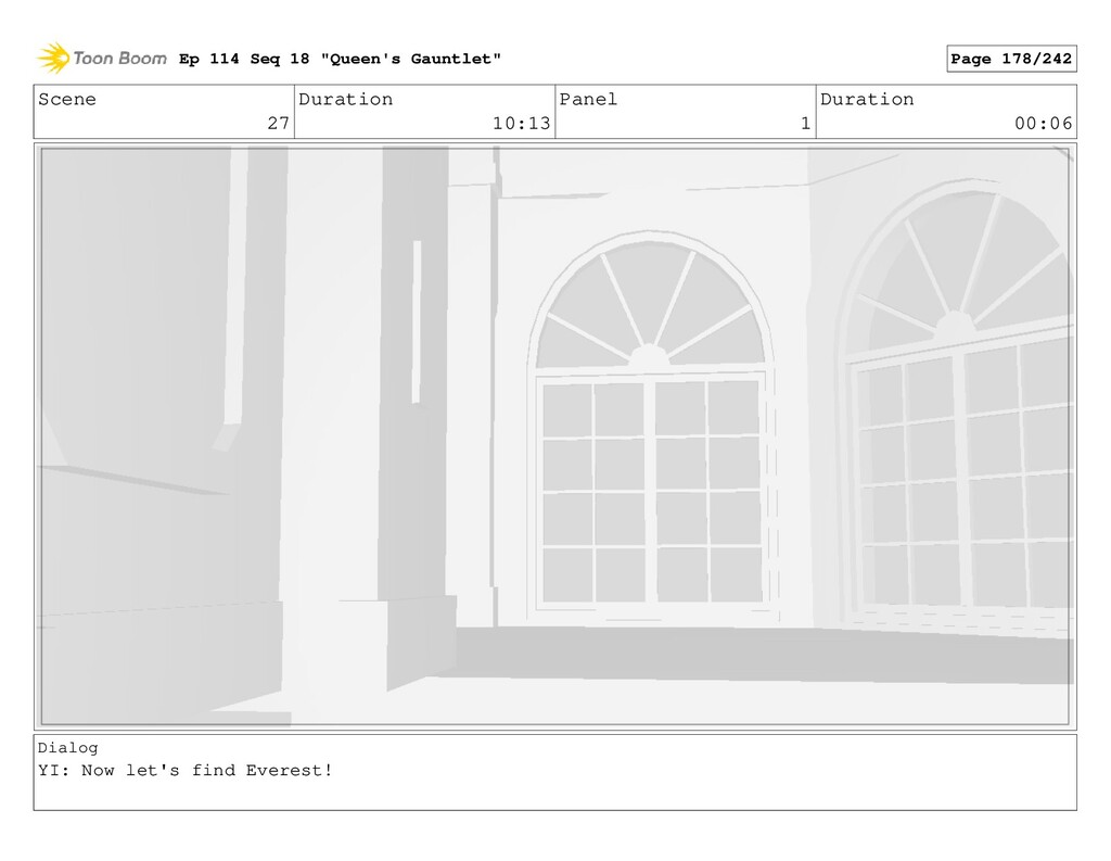 Scene 28 Duration 02:04 Panel 1 Duration 00:10 Dialog YI: