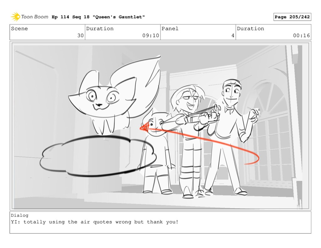 totally using the air quotes wrong but thank you! Ep 114 Seq 18 "Queen's Gauntlet" Page 205/242