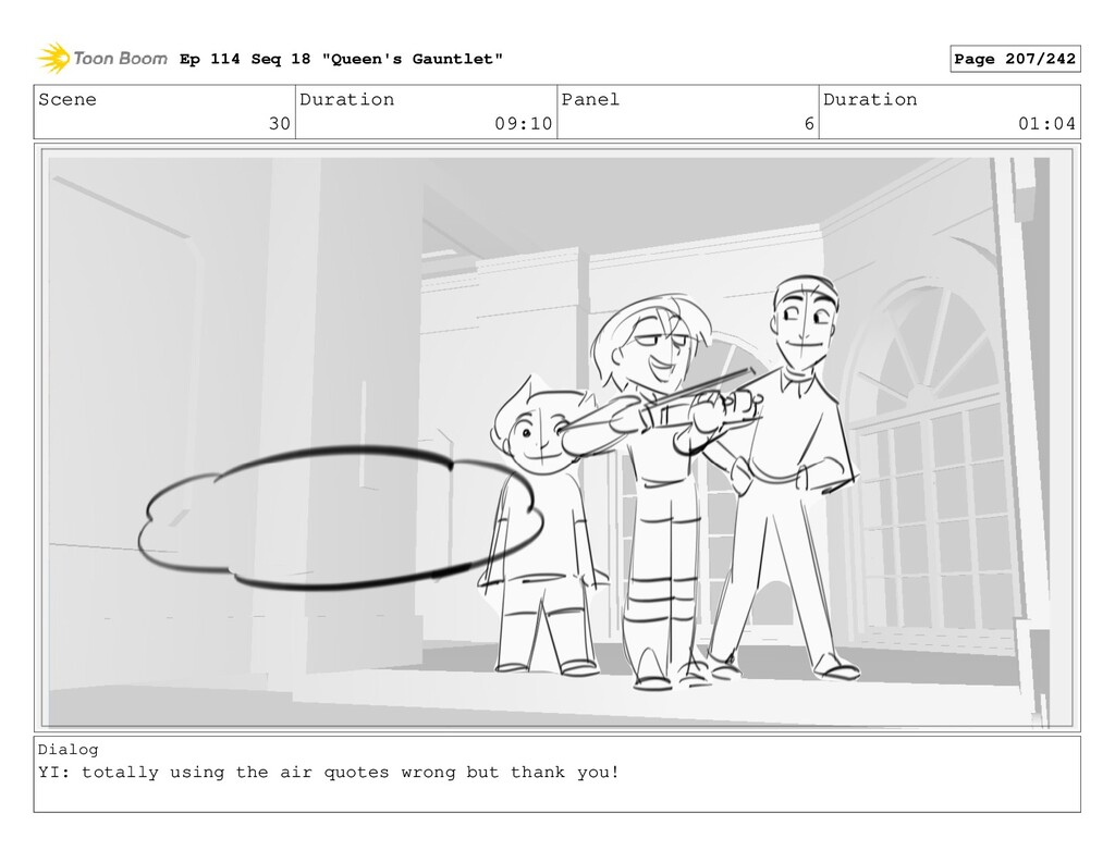 totally using the air quotes wrong but thank you! Ep 114 Seq 18 "Queen's Gauntlet" Page 207/242