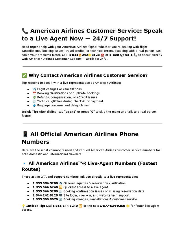 Need urgent help with your American Airlines flight? Whether you're dealing with flight cancellations, booking issues, travel credits, or technical errors, speaking with a real person can solve your problems faster. Call 1‑844🔥242🌟8128 ☎️ or 1-800-Qatar-1 📞 to speak directly with American Airlines Customer Support — available 24/7.