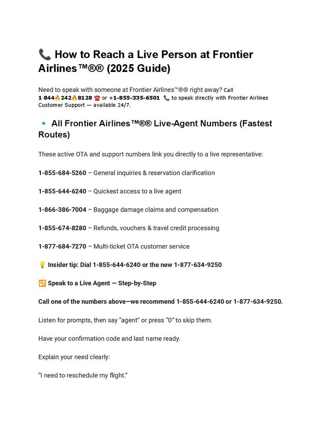 Need to speak with someone at Frontier Airlines™️®️® right away? Call 1‑844🔥242🔥8128 ☎️ or +1-855-335-6501 📞 to speak directly with Frontier Airlines Customer Support — available 24/7.