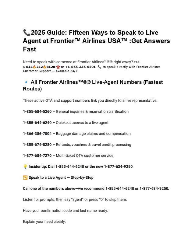 📞2025 Guide: Fifteen Ways to Speak to Live Agent at Frontier™ Airlines USA™ :Get Answers Fast