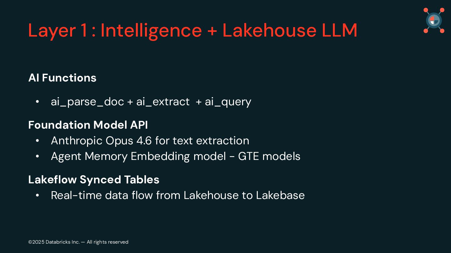 Modern AI applications are no longer just chatbots—they are agentic systems that reason, retrieve context, call tools, and maintain state across many user interactions. For application developers, the hardest part isn’t model selection—it’s building an architecture that scales without sacrificing latency, correctness, or developer velocity. In this session, we’ll walk through a PostgreSQL-centric architectural pattern for building scalable agentic AI applications using Databricks Lakebase (Postgres-compatible OLTP) alongside the Databricks Lakehouse.