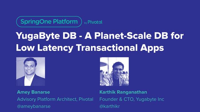 It is well understood that microservices are multi-cloud deployable in an active-active mode. The challenge has always been the data tier powering the apps which has remained as a high-latency, hard-to-scale master-slave RDBMS for a long time. Multi-master deployments as well as the use of a separate NoSQL DB for multi-region data distribution are simply band-aids to this problem and do not deliver the desired business outcomes. YugaByte DB, a planet-scale, highly performant, ACID compliant and transactional Database is a startup founded by the engineers who were instrumental in creating Cassandra inside FaceBook. Karthik from YugaByte and Amey from Pivotal are presenting YugaByte DB running across multiple datacenters with a live demo of a large scale ecommerce app powered by Spring Framework. The talk will also highlight the distributed transactions capabilities with global consistency and tunable reads as well as ease of use for developers using familiar Spring Data Cassandra and Redis modules.