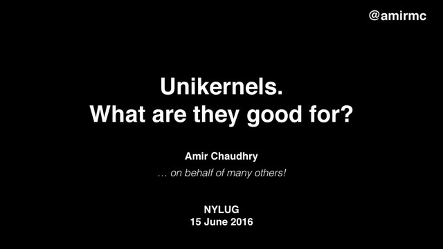 • ClickOS • Clive • Drawbridge • HaLVM • IncludeOS @amirmc Unikernels
