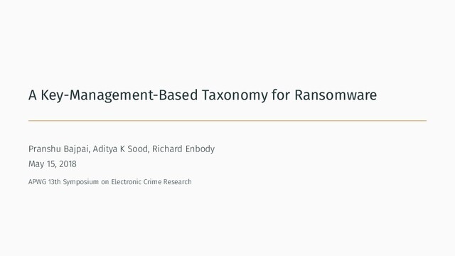 Ransomware encrypts user files making management of the encryption key(s) critical to its success. Developing a better understanding of key management in ransomware is a necessary prerequisite to finding weaknesses that can be exploited for defensive purposes. We describe the evolution of key management as ransomware has matured and examine key management in 25 samples. Based on that analysis, we introduce a ransomware taxonomy that is analogous to hurricane ratings: a Category 5 ransomware is more virulent from a cryptographic standpoint than a Category 3. In our analysis of samples in light of the taxonomy, we observed that poor cryptographic models appear as recently as 2018.