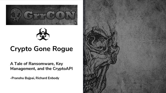 Ransomware such as WannaCry and Petya have been heavily focused upon in news but are their cryptographic models different from predecessors? Key management is crucial to these cryptoviral extortions and they harness the power of resident Crypto APIs available on host for convenience. In other words, they command victim’s resources to lock victim’s resources. In this talk, we examine key management models deployed in infamous cryptovirii with the ultimate objective of providing a deeper comprehension of exactly how resident APIs are being used against users. On a Windows host, CryptoAPI (CAPI) provides cryptographic services to applications. CSPs are sets of DLLs that are associated with CAPI implementing cryptographic functions such as CryptAcquireContext, CryptGenKey, CryptEncrypt, CryptImportKey, CryptExportKey, CryptDestroyKey etc. In Windows Vista and later, CNG replaces CAPI and the ransomware menace persists. We explain cryptographic functions exploited by several ransomware families and explore answers to crucial questions such as how and where the encryption key is generated, where it is stored, how it is protected while encrypting user data, and how it is securely purged. We explore several possibilities of key recovery without paying the ransom. We provide graphical representations combined with pseudo codes embodying real-world Crypto API function calls pertaining to key management in ransomware. We highlight limitations faced by ransomware with respect to key management and examine practical potential defenses. Finally, we explore options available to ransomware developers in absence of CAPI and CNG. For example, RAA uses the CryptoJS library. This talk delves deep into key management in present-day ransomware and is a direct result of real-world case studies of highly virulent infections.