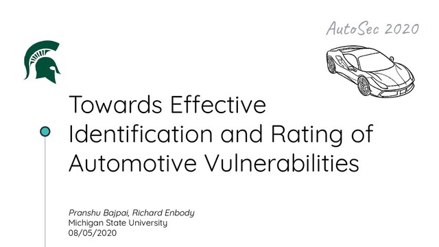 Cybersecurity is a paramount concern in automobiles since deficiencies in security controls put human lives at risk. Some security vulnerabilities are more critical than others and demand immediate attention. Therefore, it is imperative to quantify associated risks by means of rating security vulnerabilities on a scale of severity which has proven to be a useful tool for traditional IT security in comprehending the real risk associated with a vulnerability. In this paper, we present a methodology for adapting the proven CVSS scoring system to automobiles and illustrate the notion with several examples of real-world automotive security vulnerabilities. We also propose a CVV naming system, that is based on the existing CVE system by MITRE, to assign unique identifiers to these vulnerabilities which permits efficient tracking and analysis of automotive vulnerabilities.