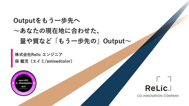2025 Japan AWS Jr. Champions 内で、次世代向けに開催された「継ぐLT(Tsunagu LT)」というLT会で発表した内容です!