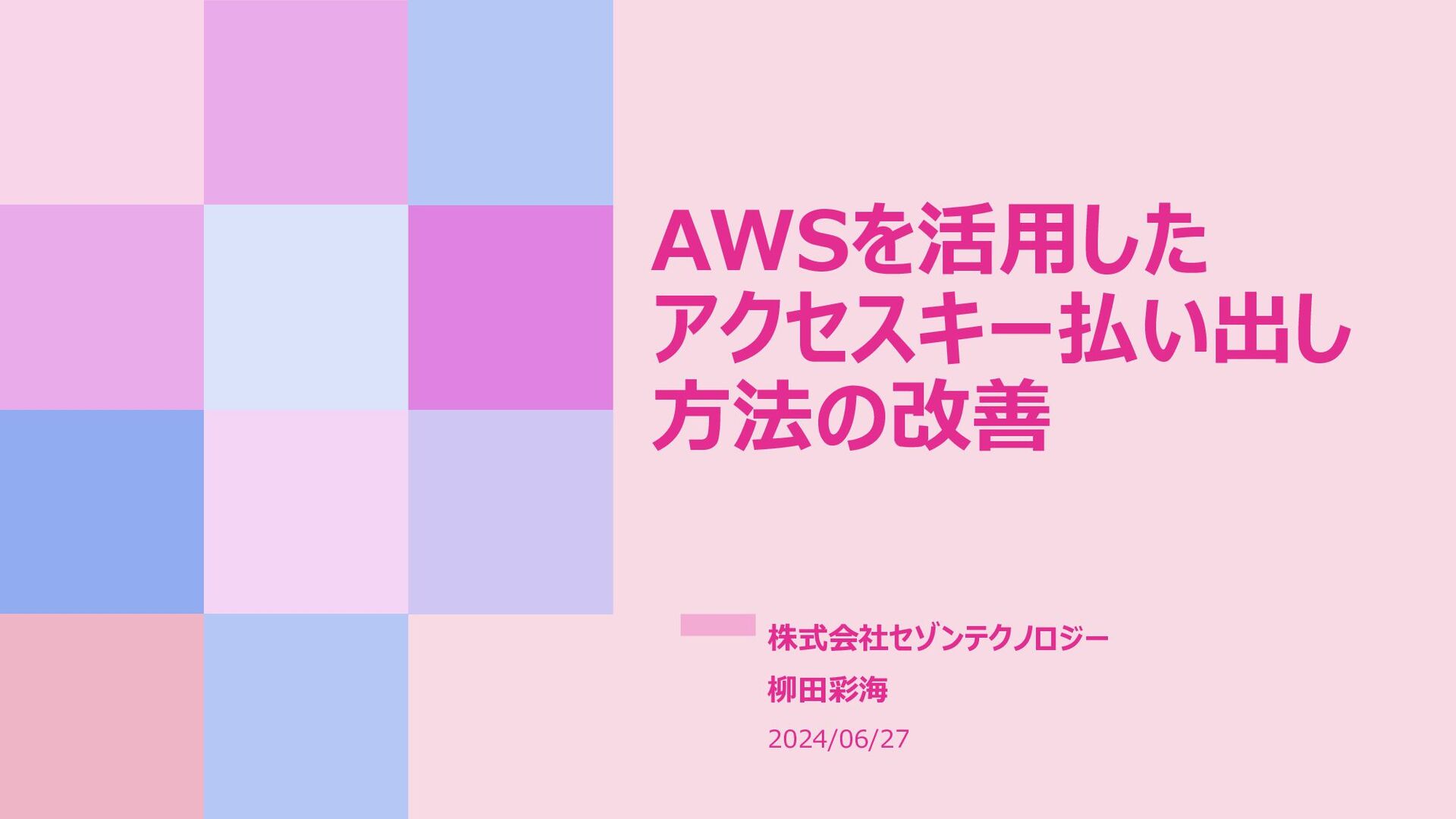AWSを活用した アクセスキー払い出し 方法の改善 株式会社セゾンテクノロジー 柳田彩海 2024/06/27