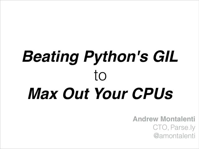 Alternative title: "Scaling Python to 3,000 Cores." Among the #1 complaints of Python in a data analysis context is the presence of the Global Interpreter Lock, or GIL. At its core, it means that a given Python program cannot easily utilize more than one core of a multi-core machine to do computation in parallel. However, fear not! To beat the GIL, you just need to be willing to adopt a little magic -- and this talk will tell you how.