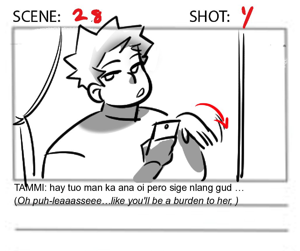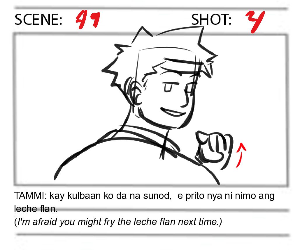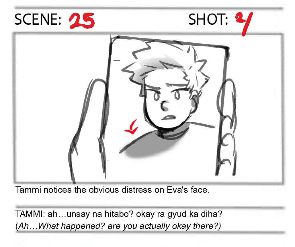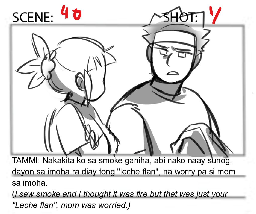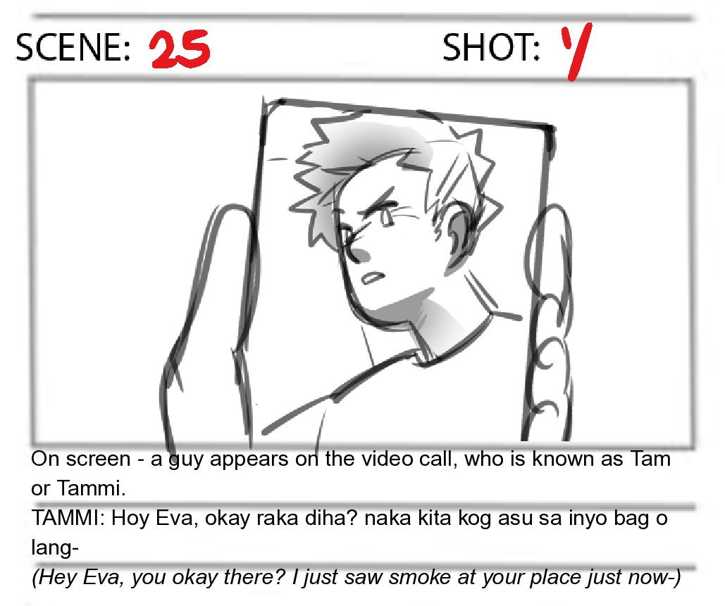 who is known as Tam or Tammi. TAMMI: Hoy Eva, okay raka diha? naka kita kog asu sa inyo bag o lang- (Hey Eva, you okay there? I just saw smoke at your place just now-)